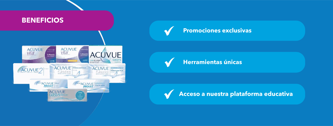 Al inscribirte y registrar tus compras de productos ACUVUE®, comenzarás a acumular puntos que podrás canjear por recompensas, descuentos especiales y otros beneficios.
